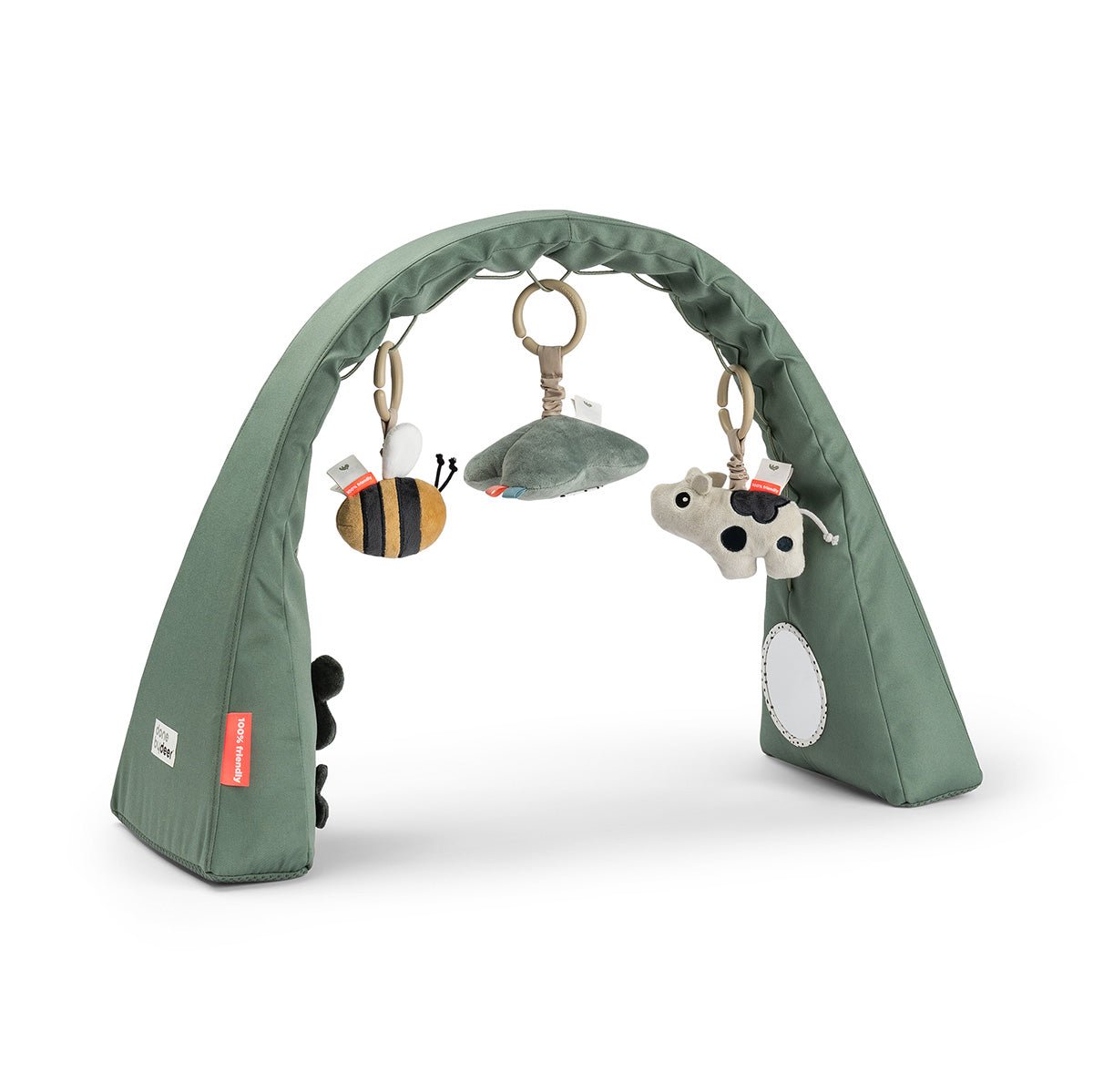 Deze zachte en uitnodigende activiteitengym stimuleert de ontwikkeling en nieuwsgierigheid van je kleintje. De verstelbare, vrijstaande boog is eenvoudig te plaatsen boven een speelmat, wieg of box. De drie meegeleverde speeltjes hebben verschillende texturen, geluiden en een spiegeltje om de zintuigen te prikkelen en de eerste motorische vaardigheden te ondersteunen.