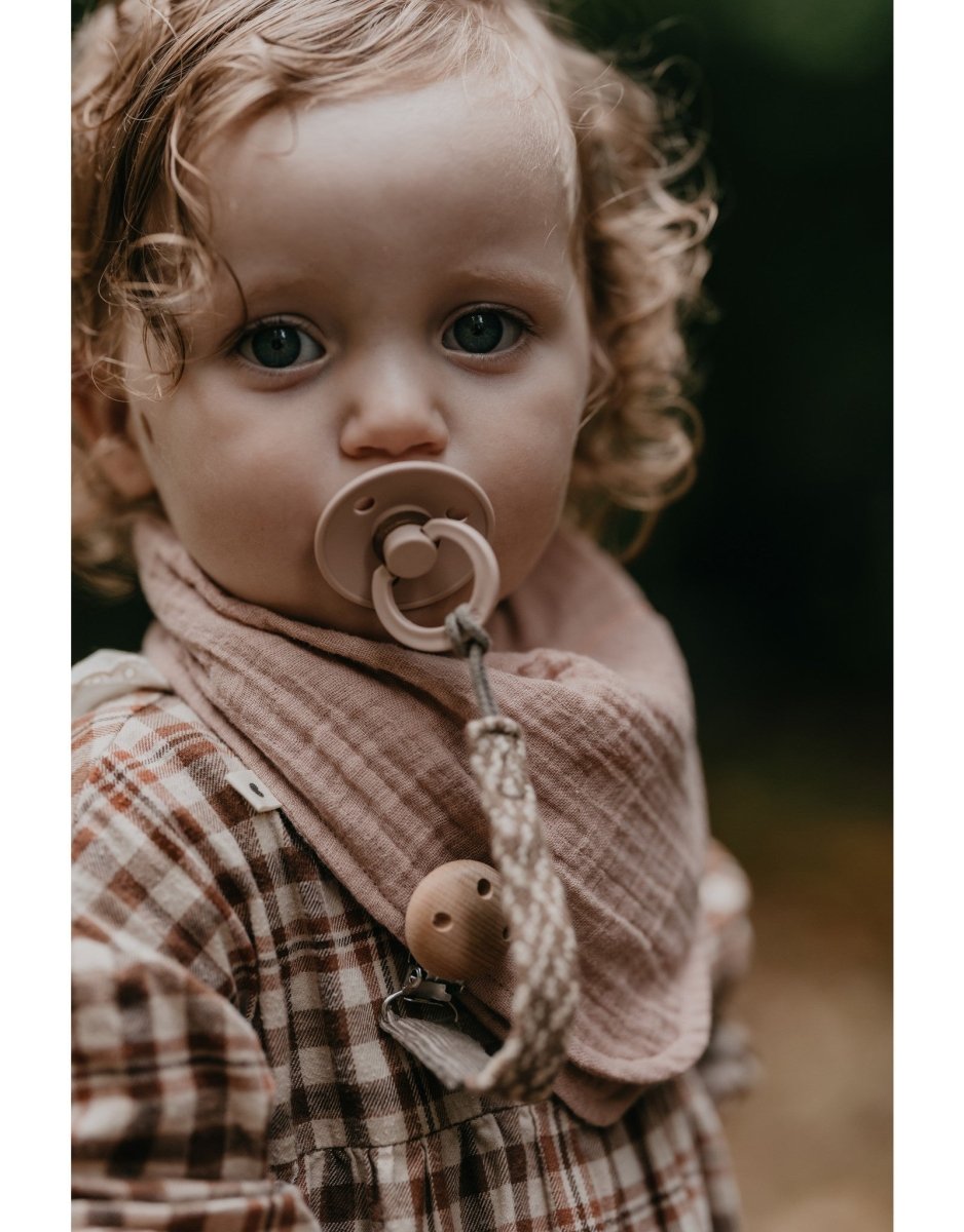 Contenido: Cordón para chupetes Blush/Ivory Baberos