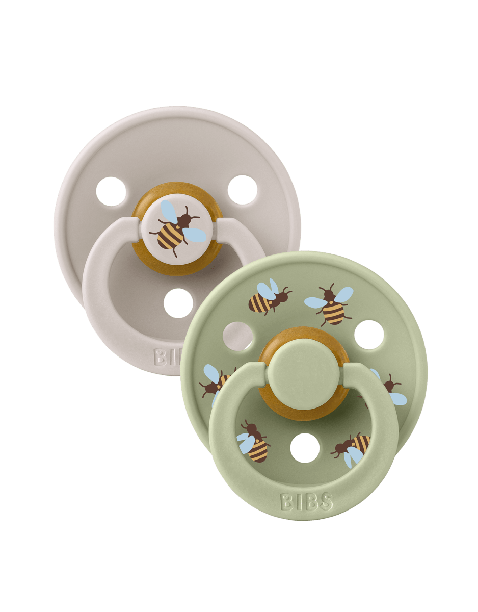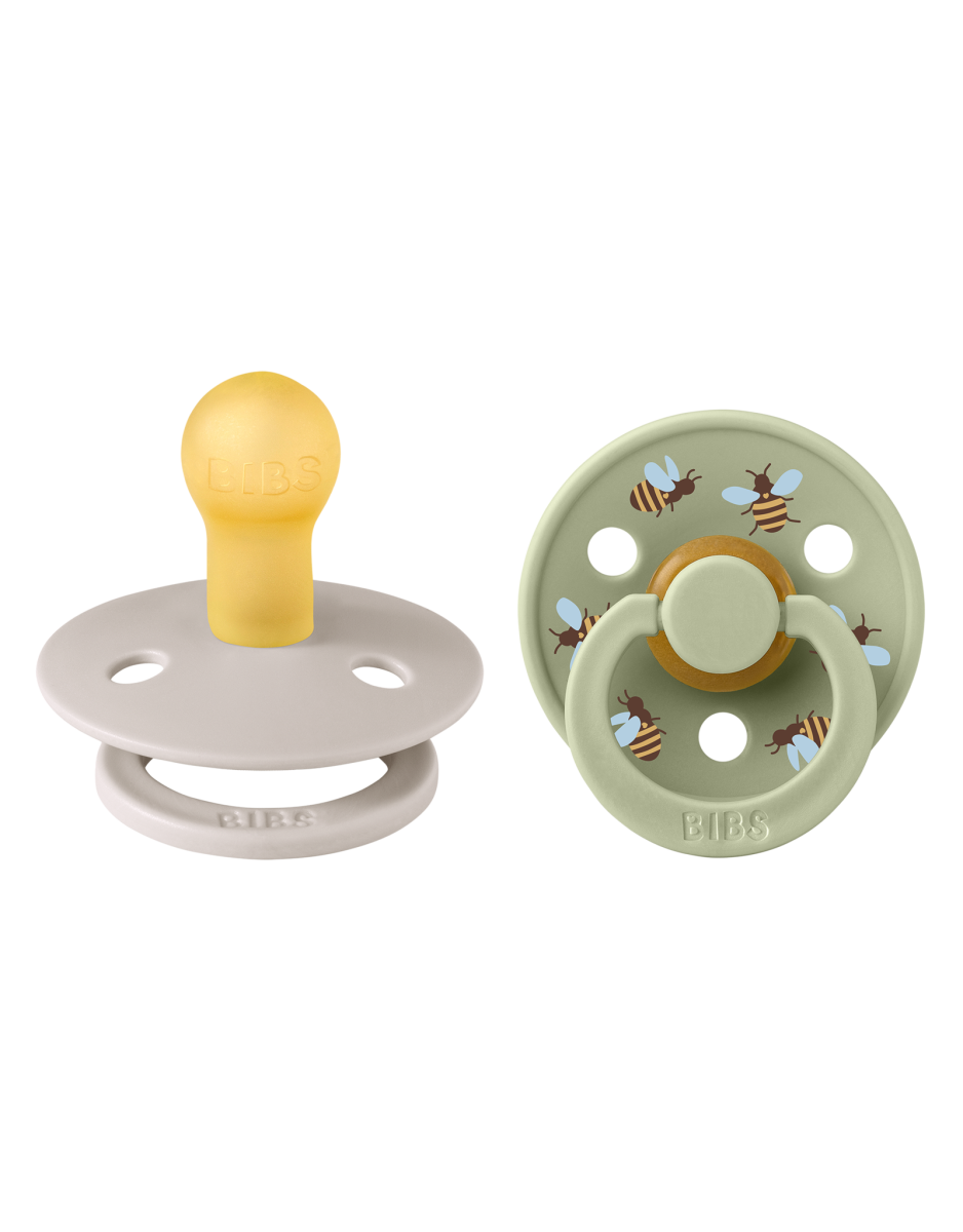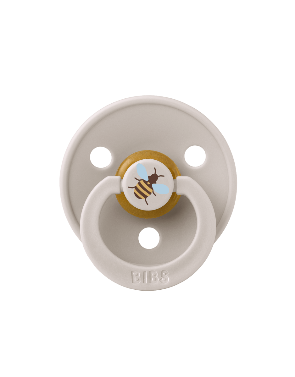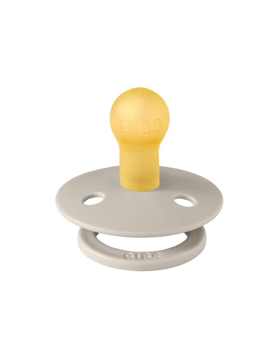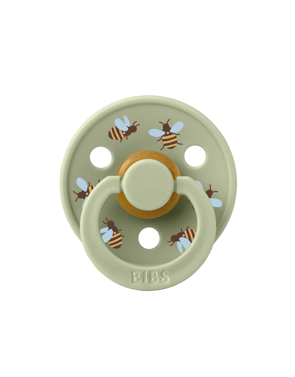 BIBS Colour es el chupete original con un escudo redondo y una tetina en forma de cereza. La tetina en forma de cereza y el escudo ligero mate están diseñados para imitar la forma del pecho materno.