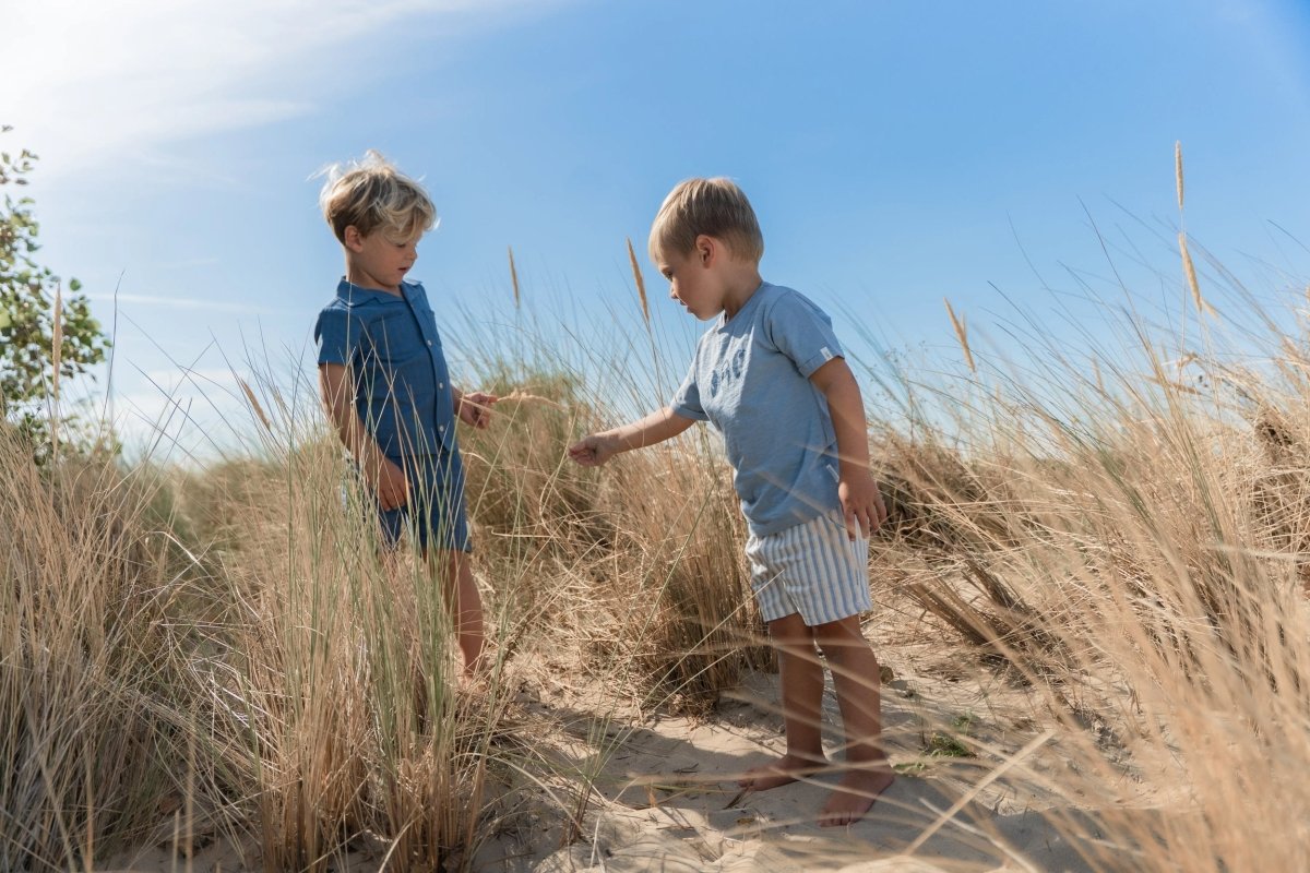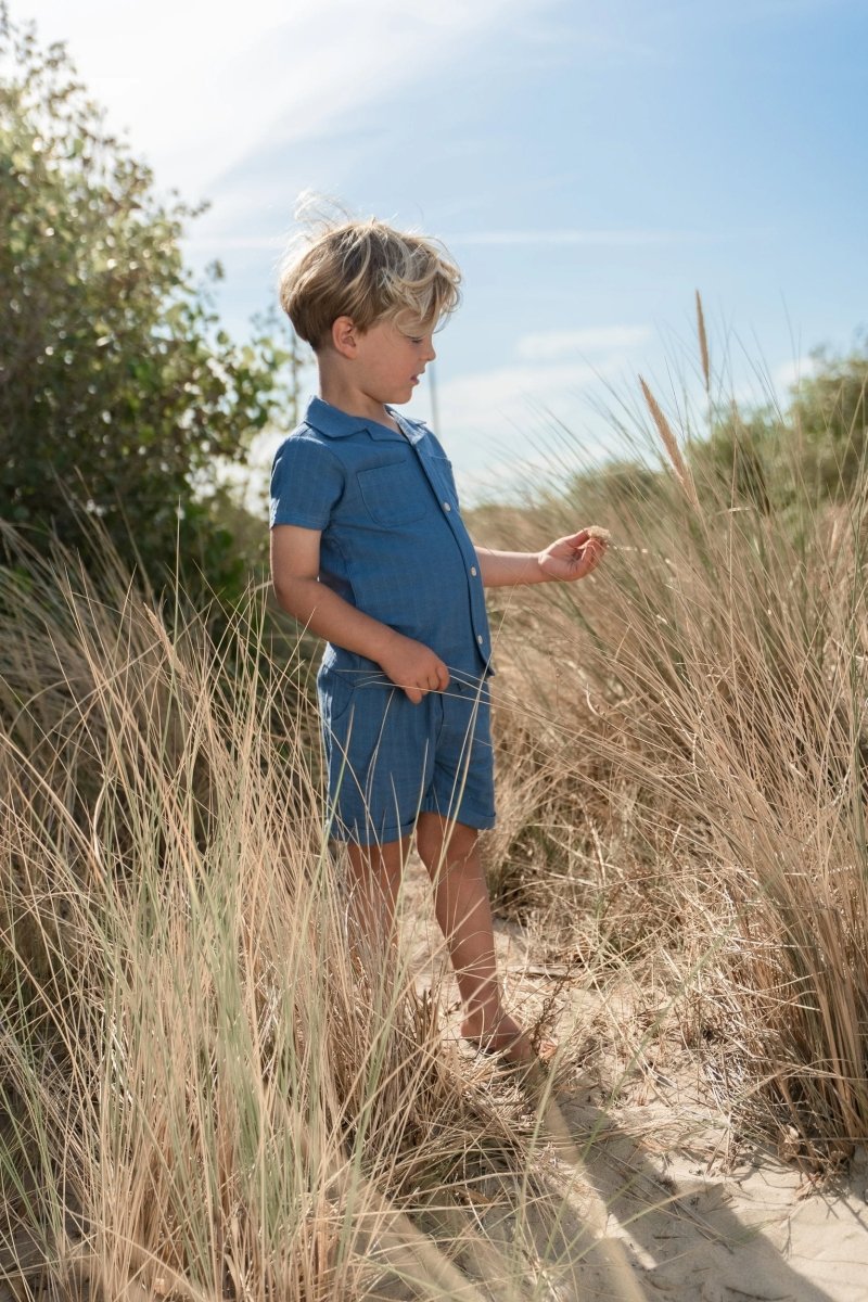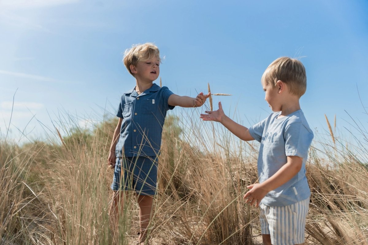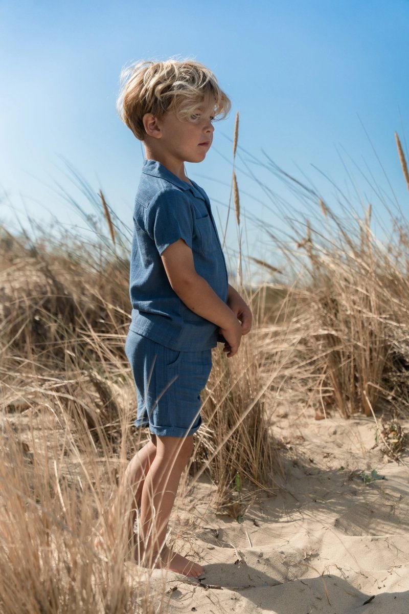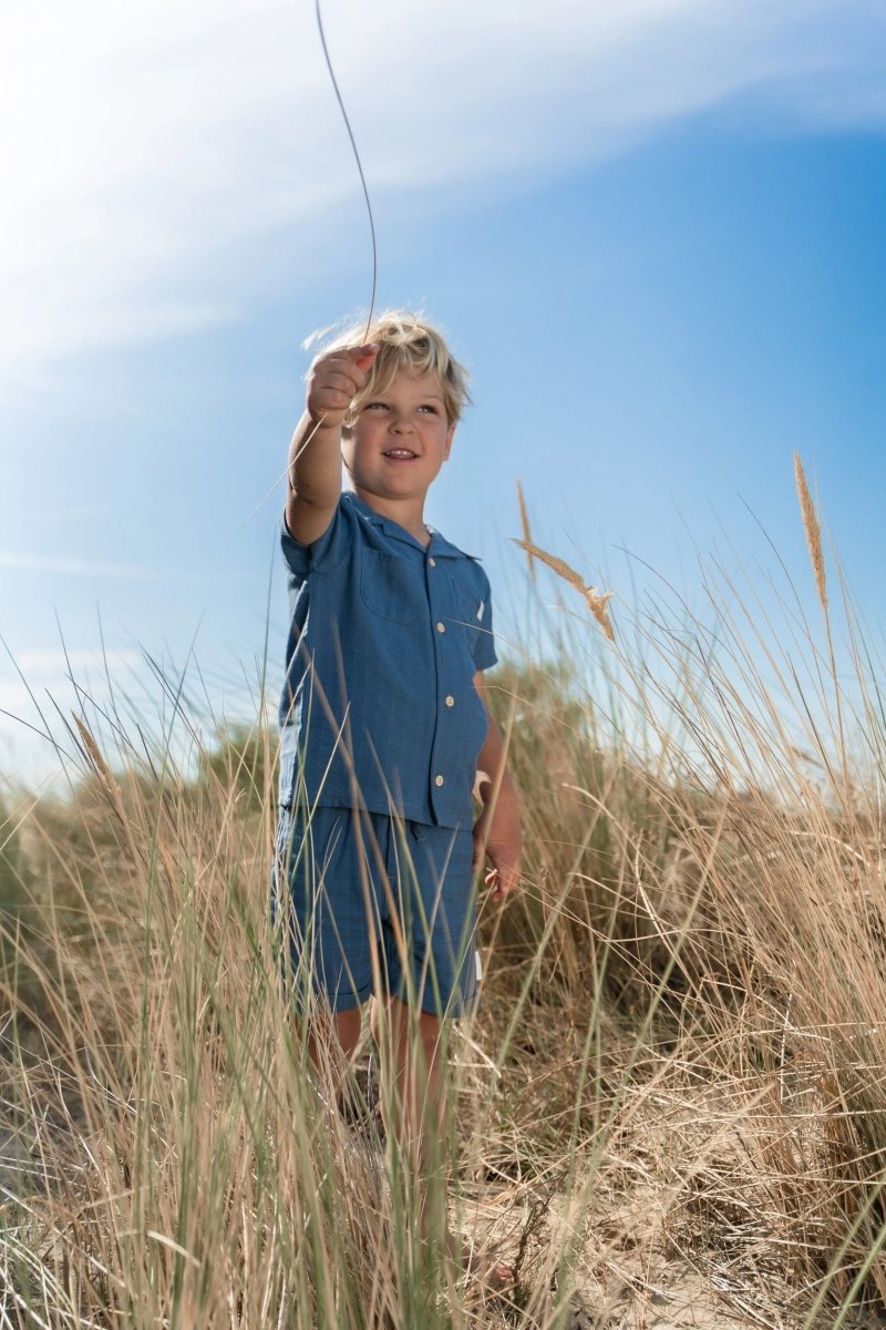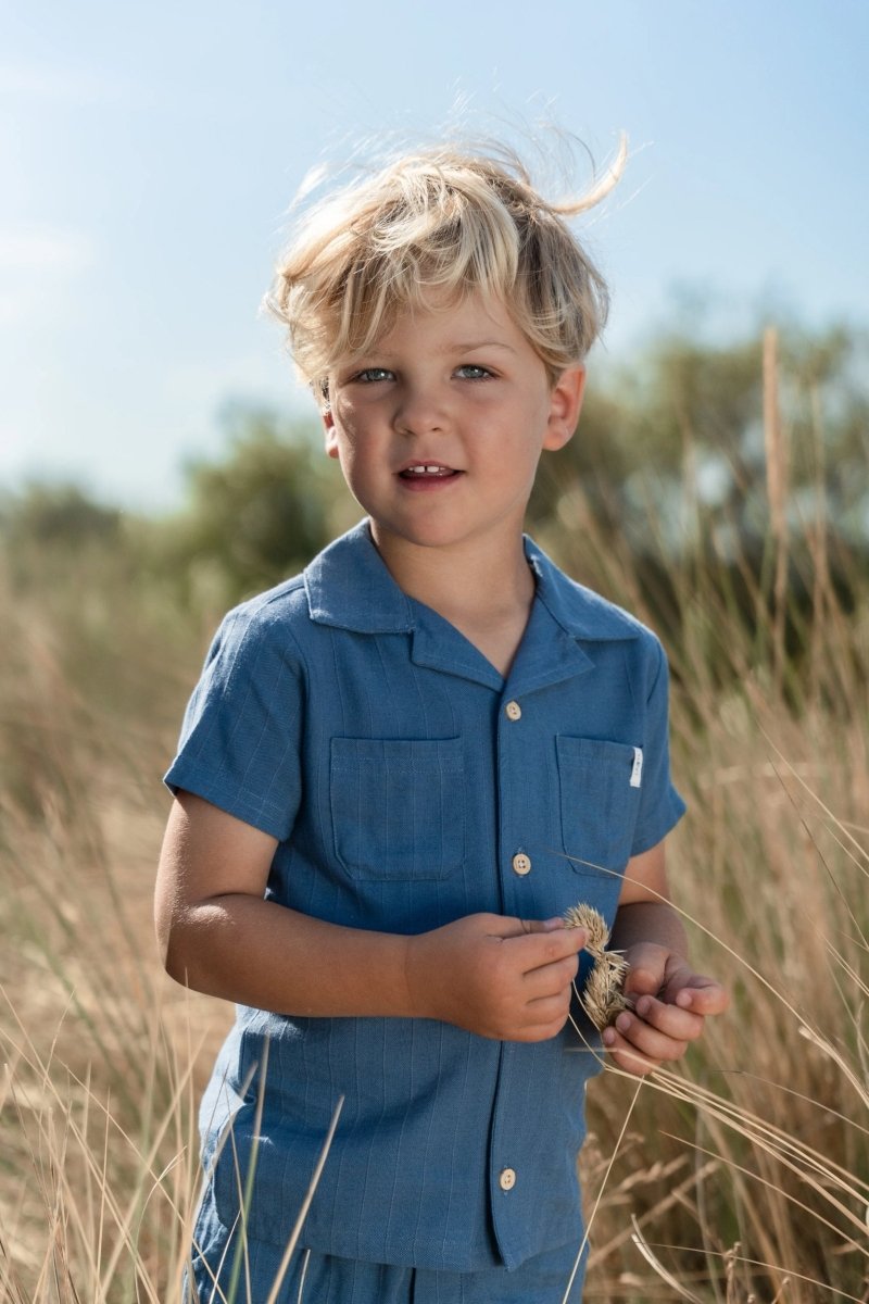 Para un look veraniego con un toque fresco, esta blusa índigo es la elección perfecta. Confeccionada en un tejido de aspecto lino con finos detalles de rayas, ofrece un ajuste ligero y transpirable. El cuello clásico y los bolsillos dobles en el pecho dan a la blusa un aspecto atemporal, mientras que los botones con aspecto de madera añaden un acento natural. Fabricada con un 55% de viscosa y un 45% de algodón orgánico, con certificado Oeko-Tex, la blusa tiene un tacto maravillosamente suave en los días cálidos.