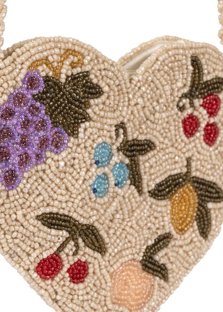 Bonito bolso en forma de corazón decorado con abalorios aplicados a mano. Cada bolso es único gracias a su carácter artesanal. Perfecto para juegos de rol o como accesorio para muñecas.