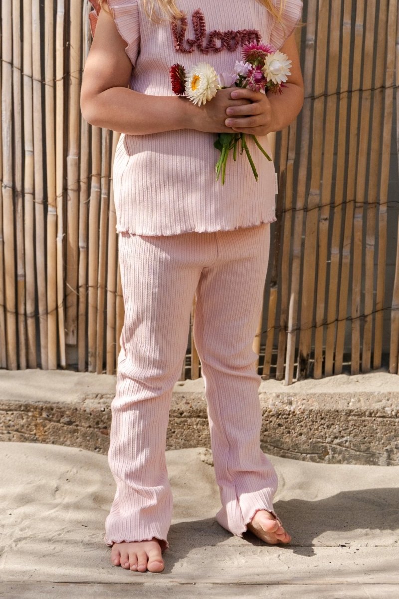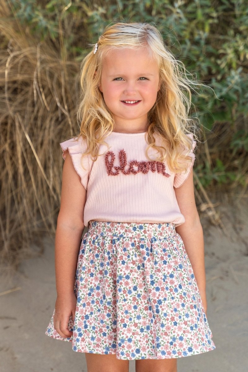 Los días de verano requieren algo vaporoso, dulce y cómodo. Esta camiseta sin mangas en Rosa Lechera es justo eso. Está confeccionada en un suave tejido acanalado de fina estructura que se mueve con suavidad y se ajusta de maravilla. Los hombros están rematados con alegres volantes y en el pecho hay una ilustración "Bloom" en 3D, un sutil guiño al crecimiento y la floración