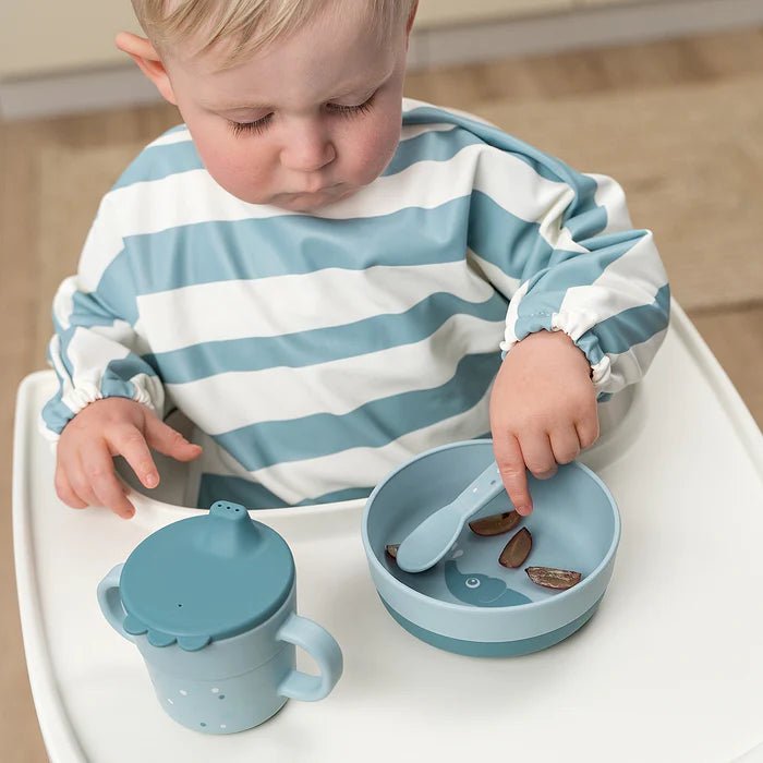 Juego de cubiertos para bebé Done by Deer Happy Dots Azul