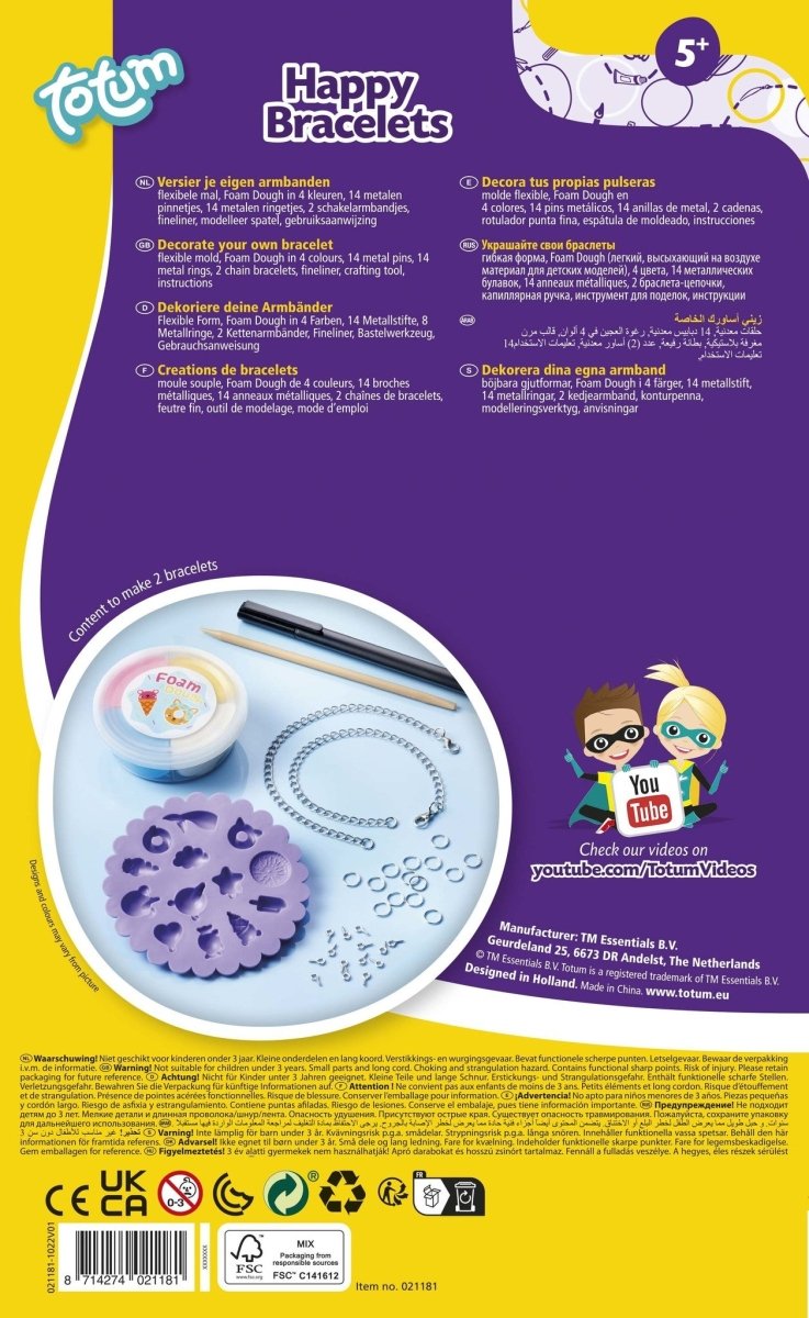 Con este set completo podrás hacer las pulseras de dijes más bonitas y alegres. Con el molde y la arcilla autopolimerizable, crea tus propios abalorios que podrás pegar a las pulseras para un resultado súper bonito. Pon la arcilla en el molde y déjala secar (no hace falta hornearla), luego decora los abalorios con el rotulador especial y pégalos a las pulseras. Divertido para ti o para regalar