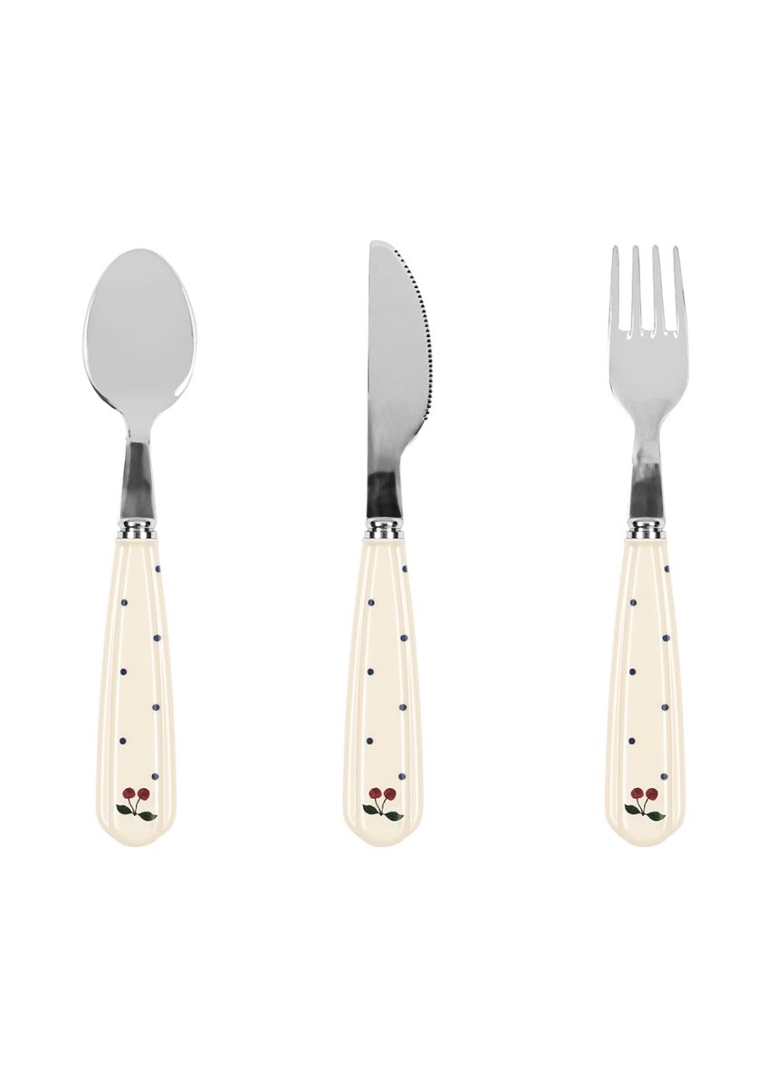 Para los pequeños amantes de la comida, este bonito juego de cubiertos de Konges Sløjd es un complemento perfecto para la mesa de los niños. Combinando funcionalidad y diseño lúdico, el juego fomenta la alimentación independiente.