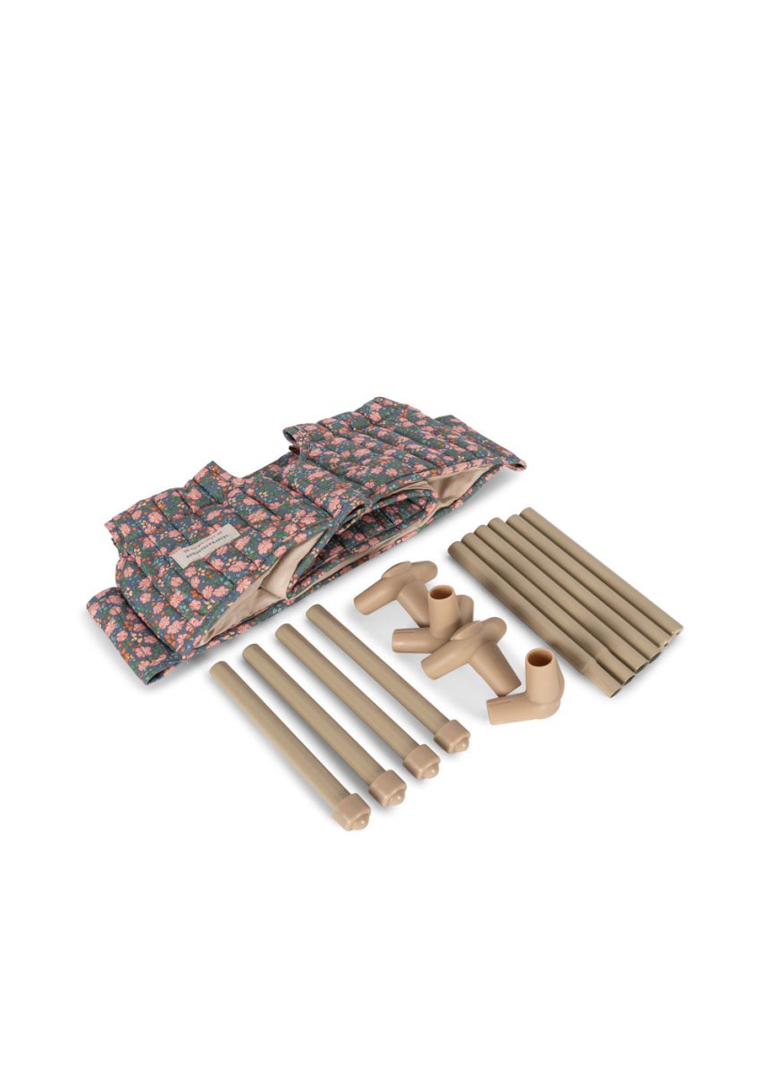 Una práctica y divertida cama de juegos de viaje que ayuda a los niños a jugar a cuidar e imaginar con sus muñecas dondequiera que estén.
