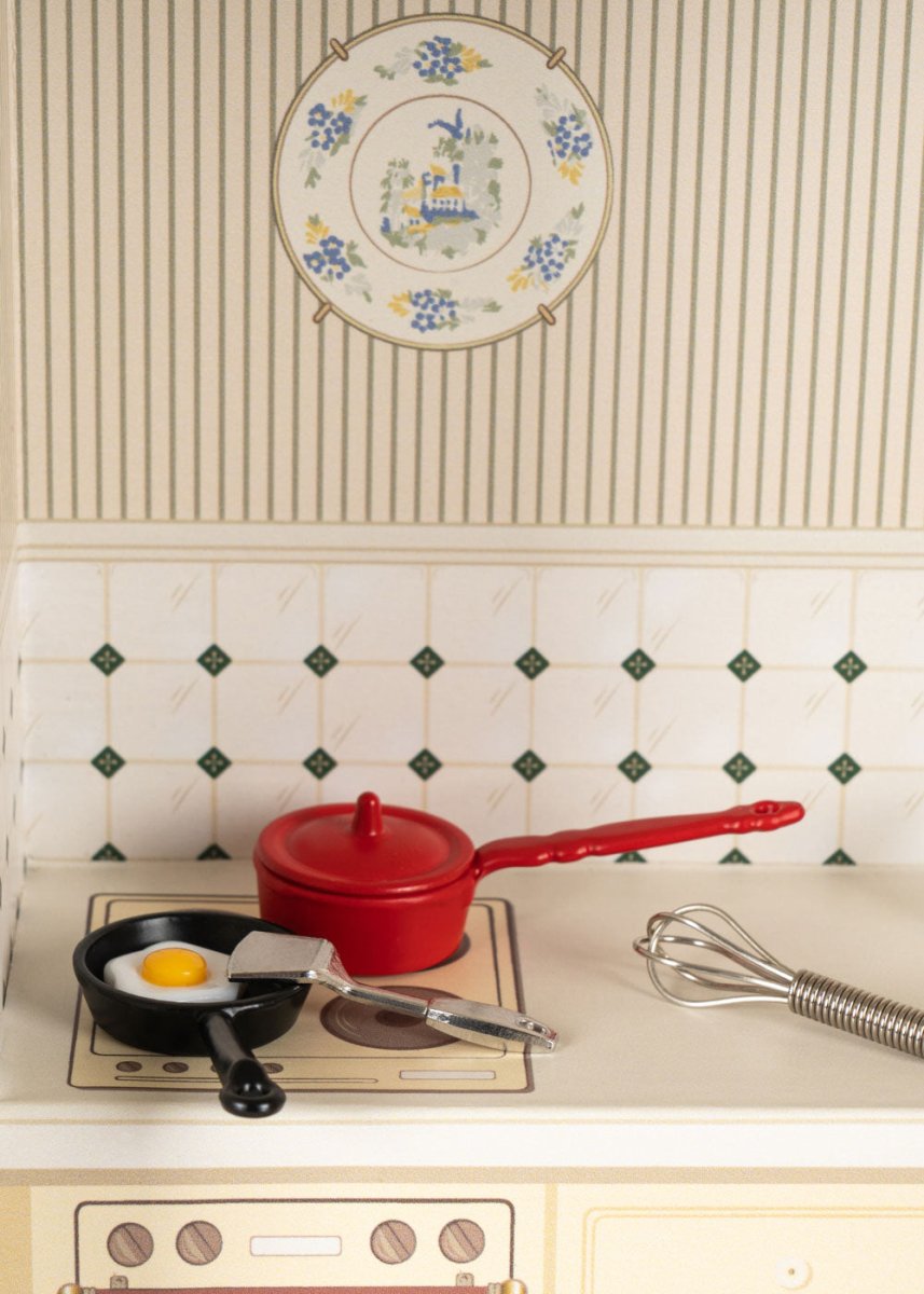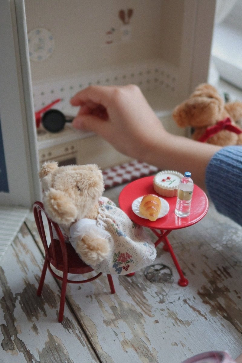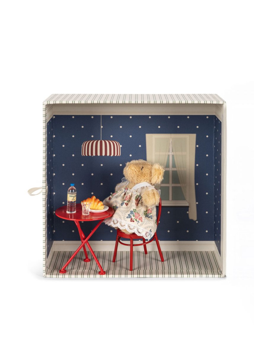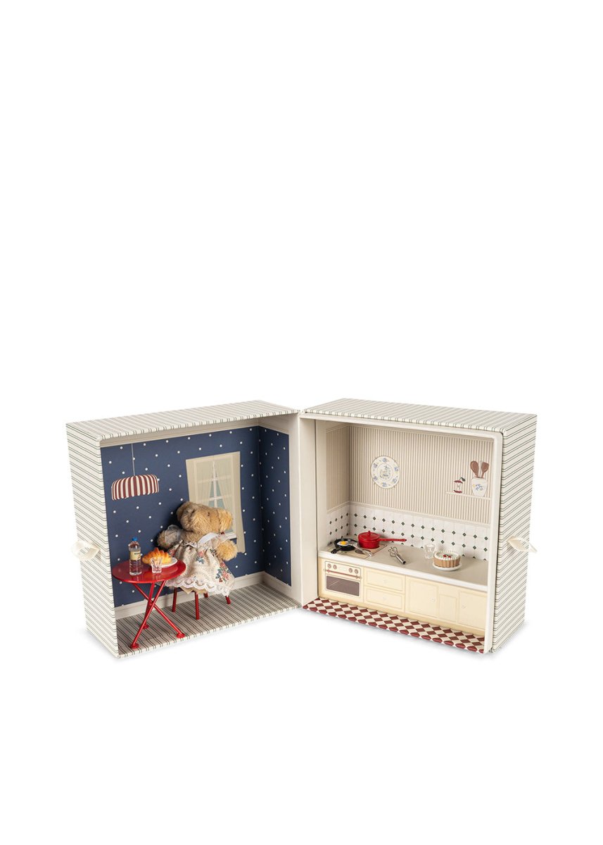 Tan pequeña y tan mona. Esta mini casita está hecha especialmente para tus ositos de peluche favoritos. Completa con una cocina y un comedor, la casita incluye una sillita, una mesa, un pastelito y bebidas preparadas en la cocina. Además, incluye un adorable mini osito con el que jugar enseguida.