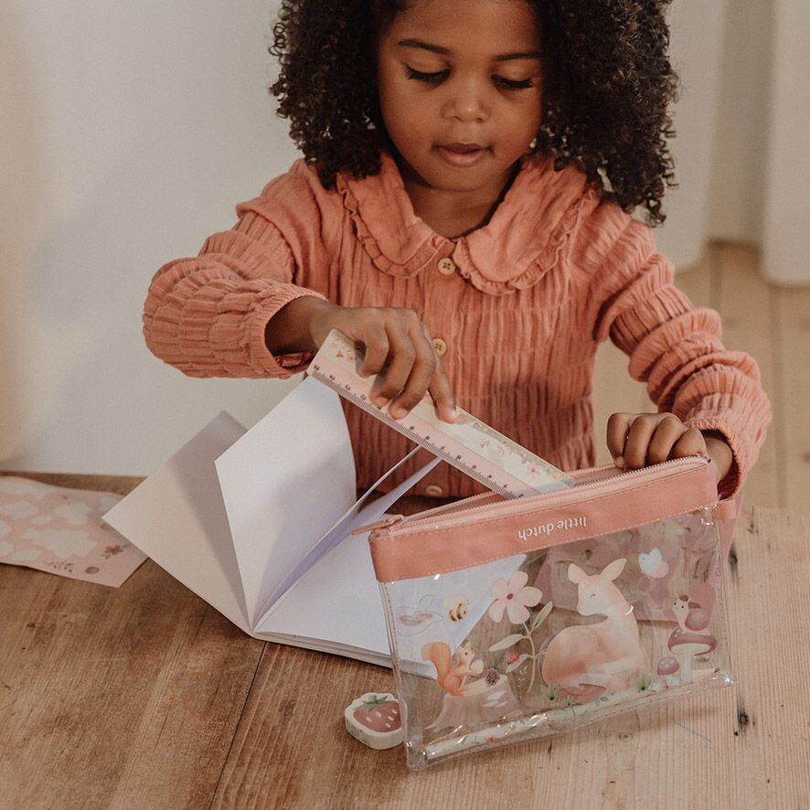 Este bonito set de papelería Little Dutch Jardín de Hadas es perfecto para los pequeños artistas y escritores. Este set contiene todo lo que necesitan para ser creativos. Un cuaderno decorado con hadas y flores de colores, una encantadora hoja de pegatinas para alegrar las creaciones, una regla resistente para trazar líneas precisas, una goma suave para borrar los errores, un sacapuntas para mantener los lápices afilados, un lápiz para escribir y dibujar, y una plantilla para crear bonitos diseños inspirados en la naturaleza. Ya sea en casa, en la escuela o fuera de ella, este set estimulará la imaginación de todos los niños mientras se sumergen en la magia del jardín de las hadas.