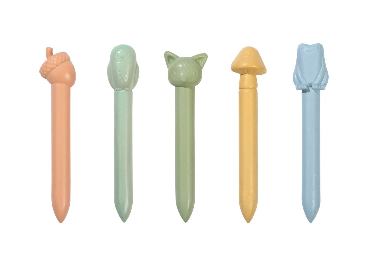 ¿Listo para una aventura creativa en el bosque? ¡Utiliza los lápices de cera Amigos del Bosque para dibujar sobre el papel las historias más bonitas del bosque! Este set contiene 5 resistentes ceras de colores naturales, cada una con una divertida tapa en forma de búho, zorro, bellota, seta o rana. Perfectos tanto para dibujar como para jugar con la imaginación. Gracias a su formato resistente, son fáciles de sujetar por las manos de los niños pequeños. No hace falta presionar con fuerza para conseguir los colores más bonitos sobre el papel. Adecuados para niños a partir de 2 años.