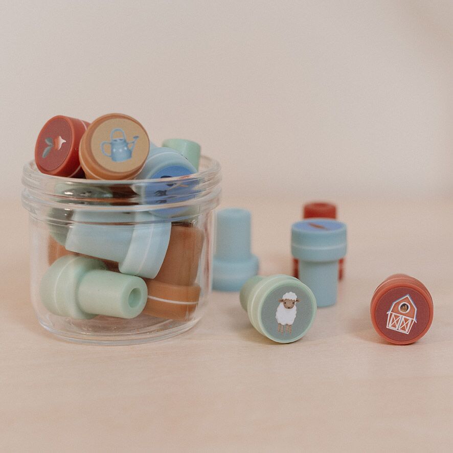 ¡Da vida a la granja con los sellos autoentintables Pequeña Granja de Little Dutch! Este set contiene varios sellos con imágenes de simpáticos animales de granja, como una vaca, una oveja y una gallina. Con estos sellos, los niños pueden crear sus propias aventuras en la granja sobre papel o páginas para colorear. Los sellos son autoentintables, por lo que no necesitan tinta adicional. Una forma fácil y divertida de estimular la creatividad y desarrollar la motricidad fina. El set también incluye una práctica caja para guardarlos.