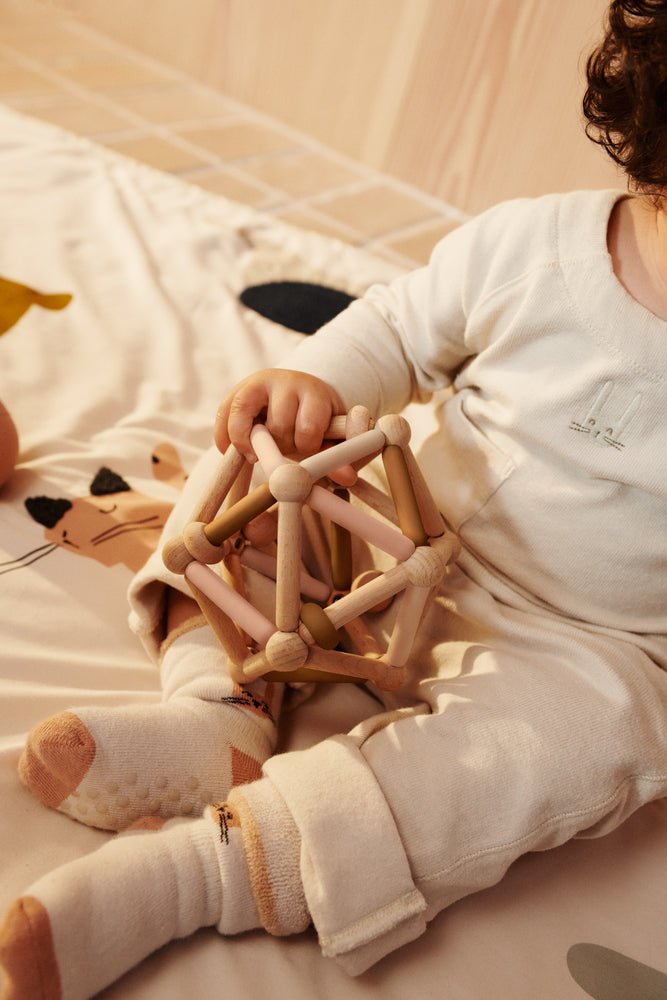 Soportes: 100% silicona, conectores: 100% madera de haya Fabricado en China Categoría de edad 0m+ Marca UKCA Marca CE Altura: 14cm, anchura: 14cm, longitud: 14cm