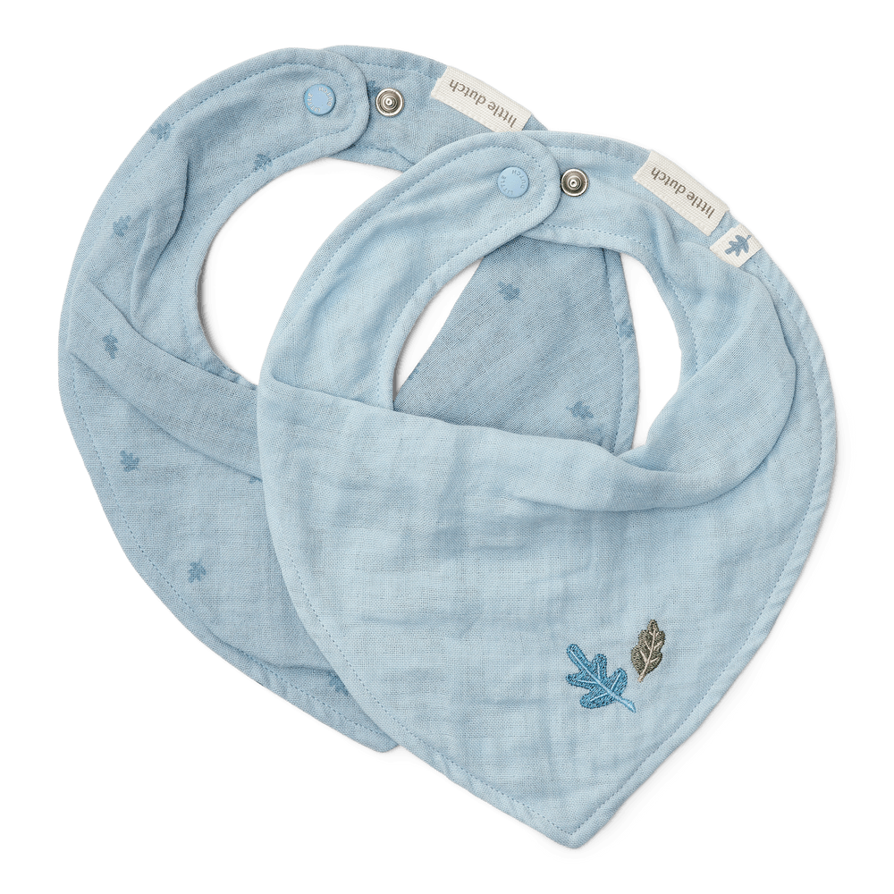 Mantén seco y elegante el conjunto de tu pequeño durante la dentición con este práctico babero bandana set de 2 - Azul Denim Puro. Fabricado con algodón 100% orgánico, el tejido hidrófilo es suave con la delicada piel del bebé y absorbe la humedad, manteniendo a tu hijo seco y cómodo.