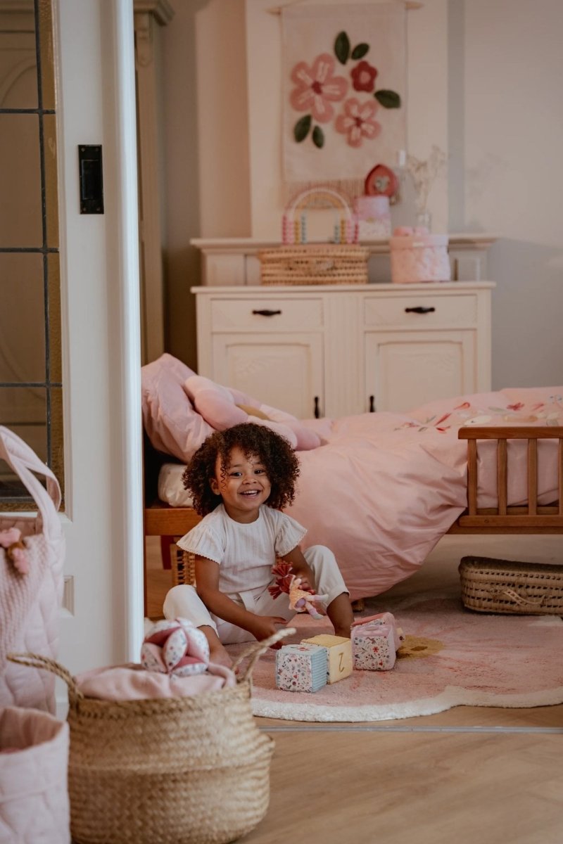 El cojín de punto Flor de la colección Jardín de Hadas está hecho de algodón 100% orgánico y es un complemento suave y elegante para la habitación del bebé. El cojín está tejido y tiene detalles bordados, lo que lo convierte en un acento juguetón y decorativo. El suave material lo hace cómodo para apoyarse en él o acurrucarse. Además, el cojín es lavable, por lo que es fácil de mantener limpio.