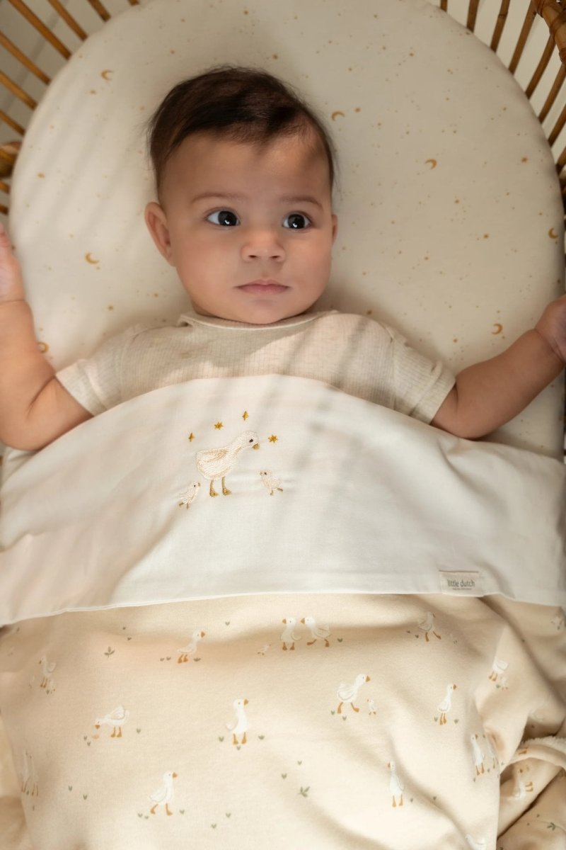 Una preciosa manta de cuna que mantendrá a tu pequeño maravillosamente calentito. Con suave punto por un lado y acogedor forro polar por el otro, esta manta es versátil: úsala como envoltorio, colcha o incluso como alfombra de juegos. Adornada con simpáticos gansitos, esta de la colección Little Goose combina lo mejor de la nostalgia con un toque fresco y moderno. Está hecha de algodón 100% orgánico y tiene un generoso valor TOG de 2,5, perfecto para las noches frías. Y cómodo: ¡simplemente puedes lavarlo a máquina a 30 grados!