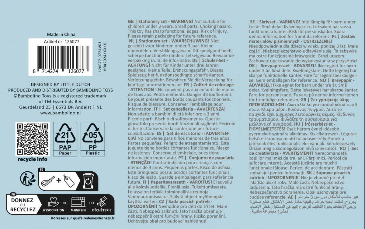 Este simpático Little Dutch Set de papelería Amigos del bosque Little Dutches perfecto para los pequeños artistas y escritores. Este set contiene todo lo que necesitan para ser creativos. Un cuaderno decorado con simpáticos animales del bosque, una colorida hoja de pegatinas para alegrar las creaciones, una regla resistente para trazar líneas precisas, una goma suave para borrar los errores, un sacapuntas para mantener los lápices afilados, un lápiz para escribir y dibujar, y una plantilla para crear bonitas formas y diseños. Ya sea en casa, en la escuela o fuera de ella, este juego estimulará la imaginación de cualquier niño mientras se sumerge en el mágico mundo del bosque.