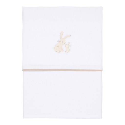 Esta sábana de cuna bordada Baby Bunny lleva un bordado de konijntjes y está hecha de algodón 100%. Una sábana de cuna bellamente confeccionada aumenta inmediatamente el ambiente del bebé o de la habitación infantil. La sábana de cuna hace una combinación perfecta con una Little Dutch manta. Los bebés duermen de maravilla bajo ella, ya que es de algodón y la tira de la sábana es suave y agradable.