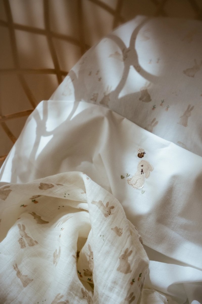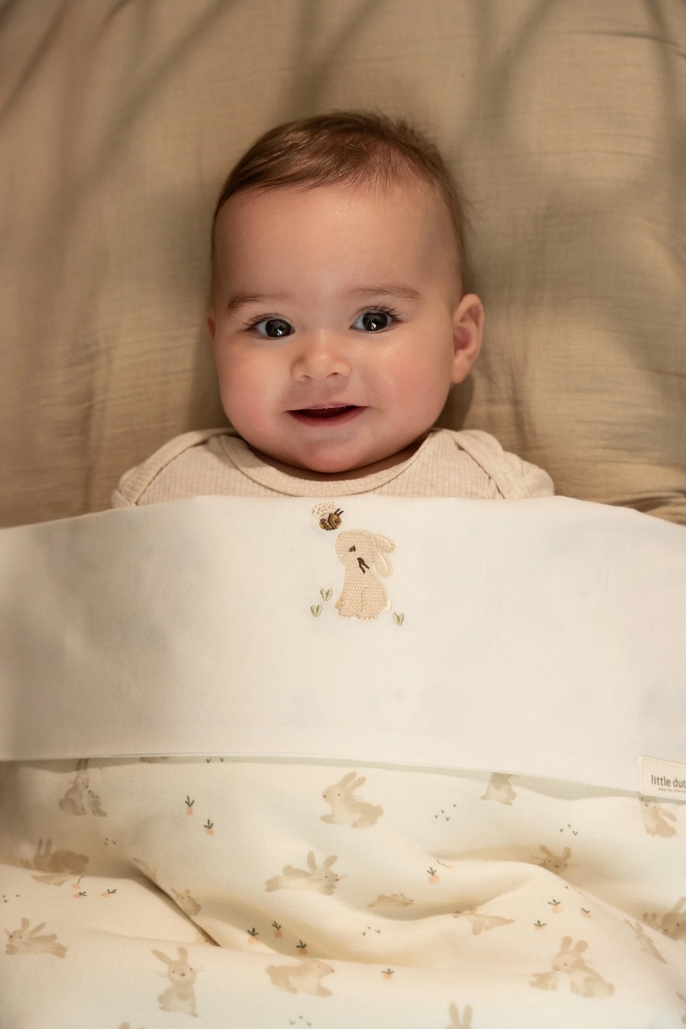 Esta sábana de cuna Baby Bunny bordada lleva un bordado de konijntjes y está hecha de 100% katoen.Een belleza de cama al instante añade más ambiente al bebé o a la habitación infantil. La sábana de cuna es una combinación perfecta con una Little Dutch manta de cuna. Los bebés duermen de maravilla debajo de ella, ya que es de algodón y la tira de cobertura de la sábana tiene un tacto agradable y suave.