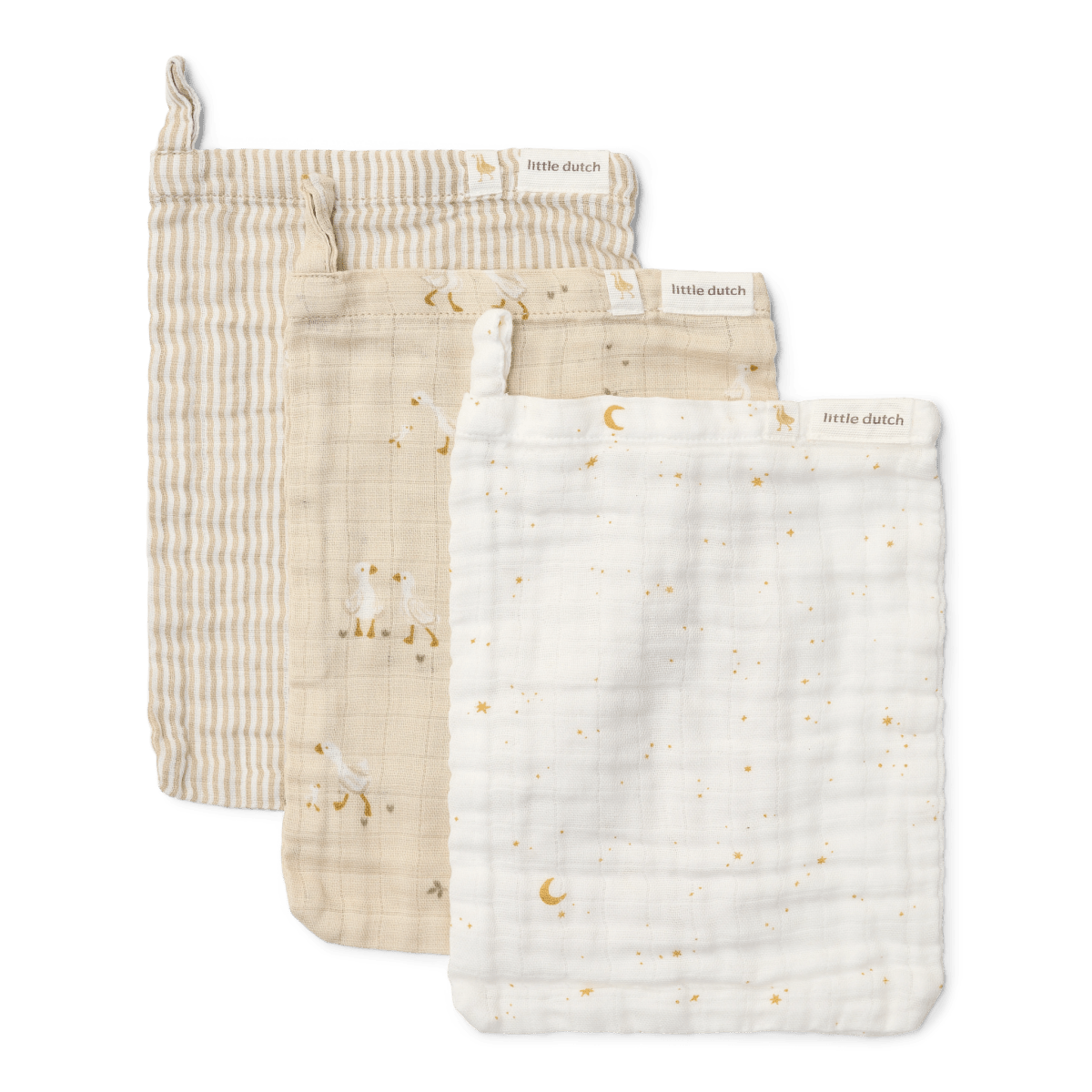 Una franela hidrófila es indispensable para la hora del baño. Hecha de algodón 100% orgánico, es suave y cuidadosa con la piel de tu pequeño. Este juego de 3 franelas combina el bonito diseño con un color fresco y liso que combina con cualquier cuarto de baño. Su práctico tamaño de 21 x 14 cm lo hace ideal para el baño diario. Despídete de las manos resbaladizas y da la bienvenida a un aseo acogedor