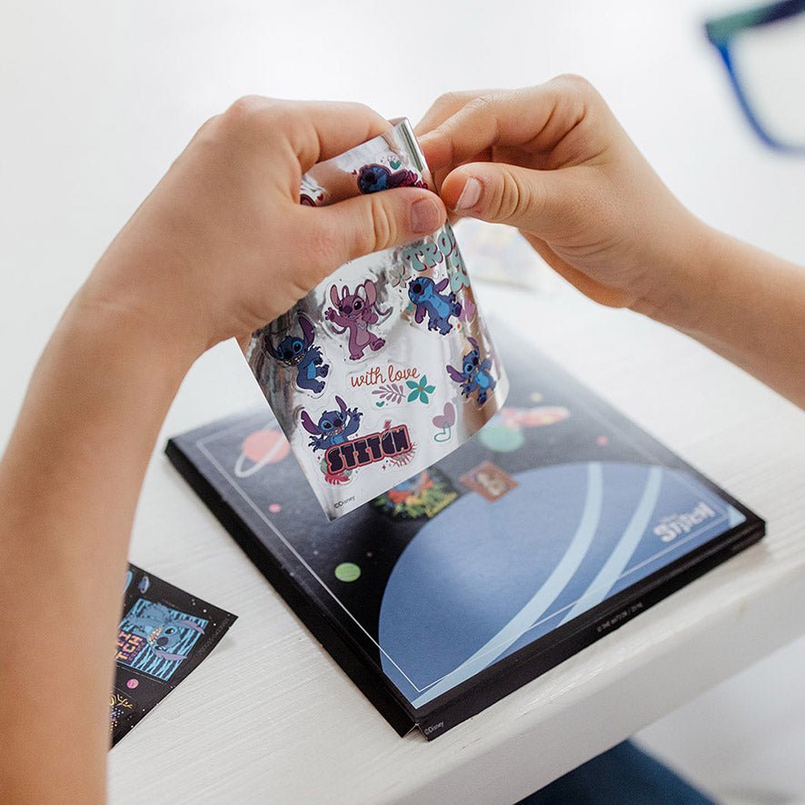 Decora todos tus dibujos, cuadernos, libretas, tarjetas e invitaciones con estas divertidas pegatinas de Stitch, Lilo y Angel, o pégalas en el fondo de juego incluido. Dale vida a tu mundo Stitch!