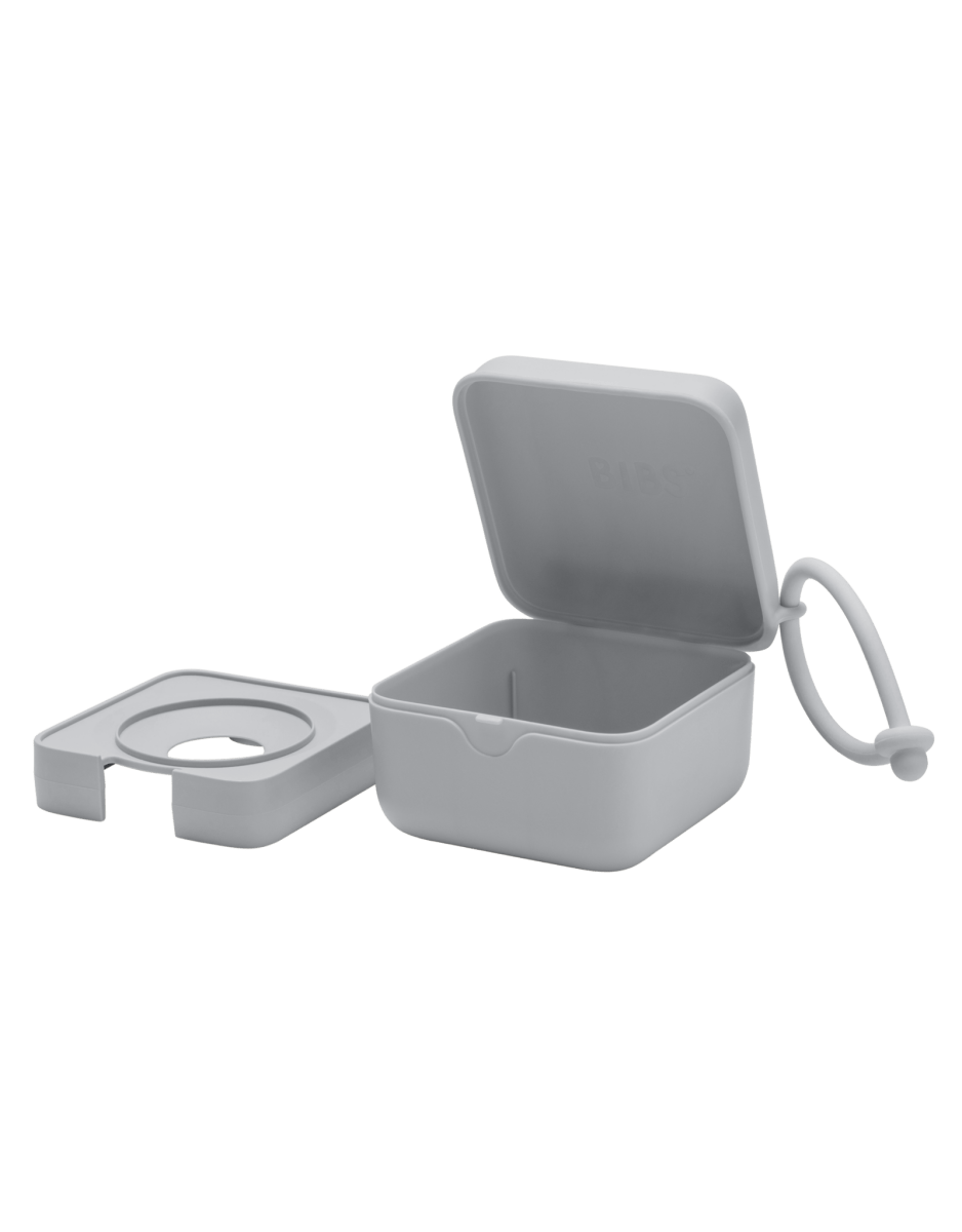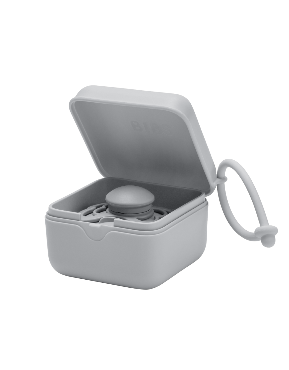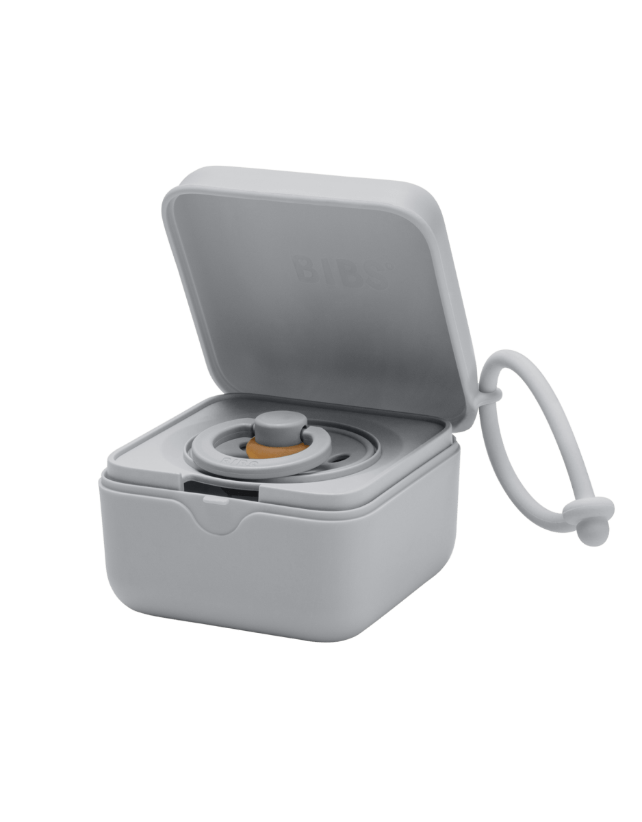 La caja puede contener hasta tres chupetes BIBS, pero también viene con un inserto para chupetes que puede contener un único