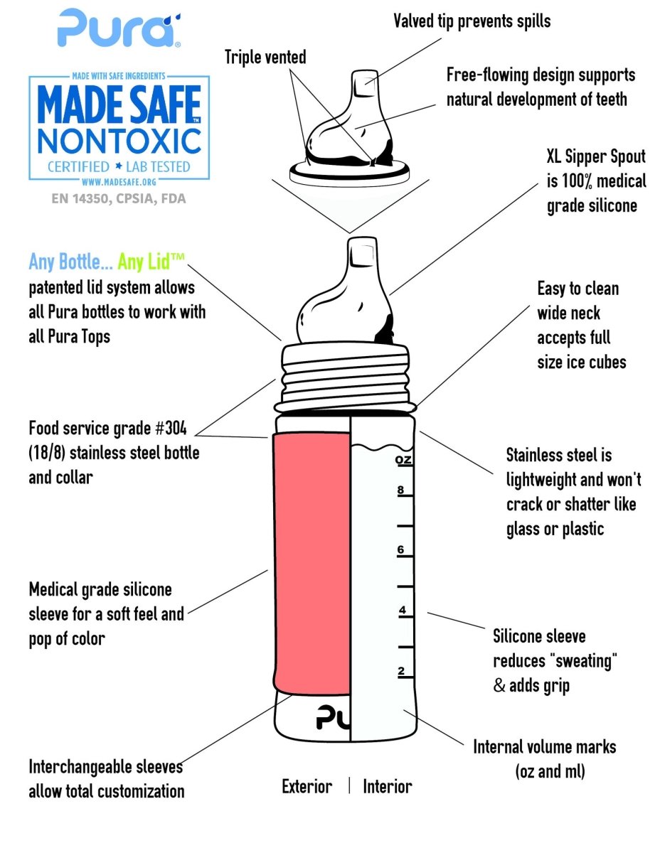 Pura Bote Biberón 325Ml Set Azul 4 piezas