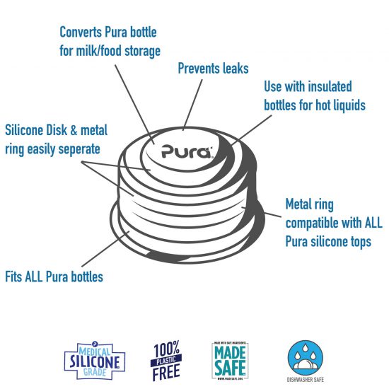 <tc>Pura</tc> Tapón de botella Tapa universal Tapón de rosca+Disco de cierre Gris