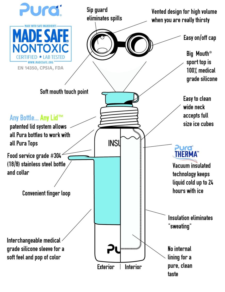 Termo Pura Acero Inoxidable 650Ml Set Negro 3 piezas