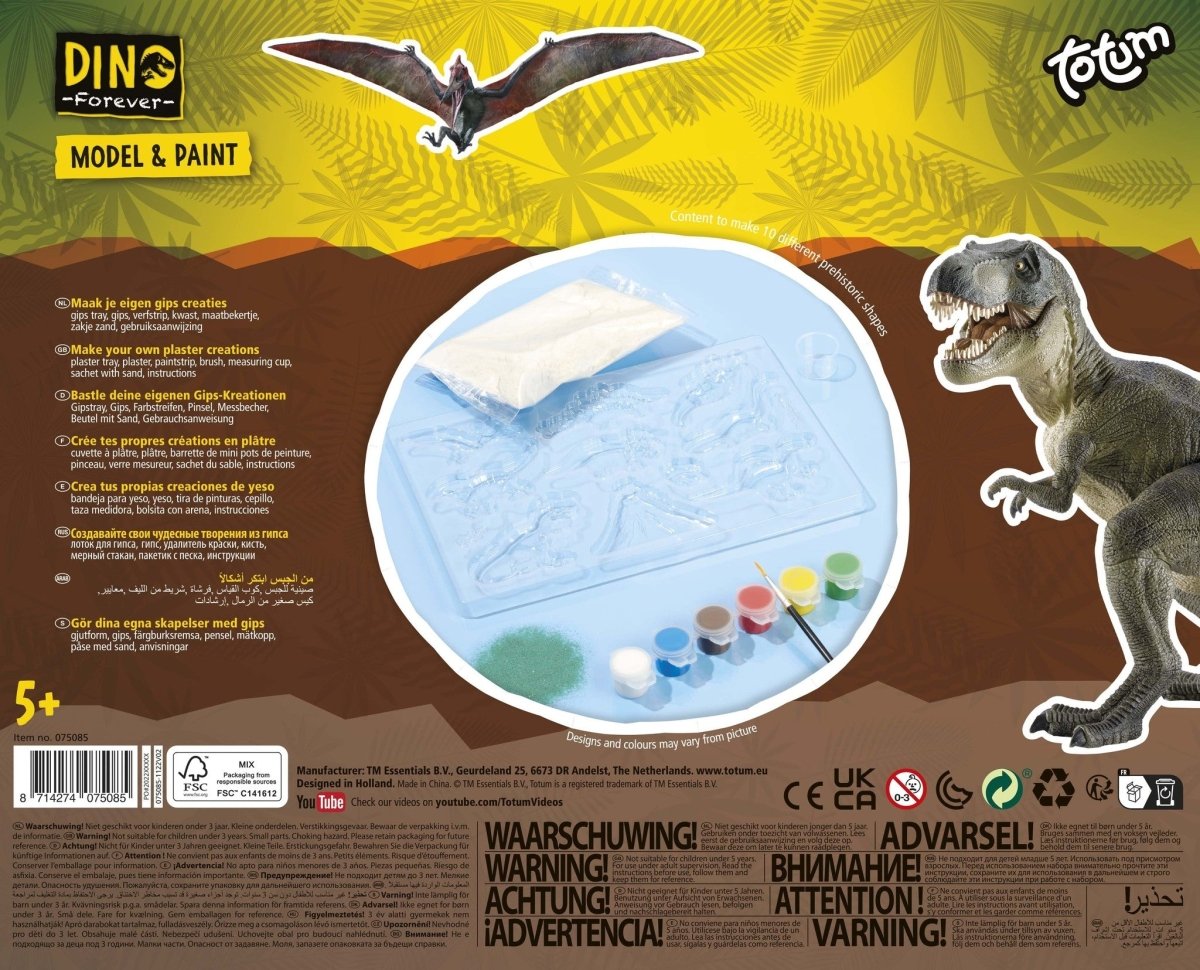 Con este divertido set de escayola de Totum, tú mismo crearás 9 dinosaurios diferentes y un volcán de escayola, que luego pintarás con la pintura y el pincel incluidos. Aprende a mezclar tú mismo los colores y crea tu propio mundo de dinosaurios
