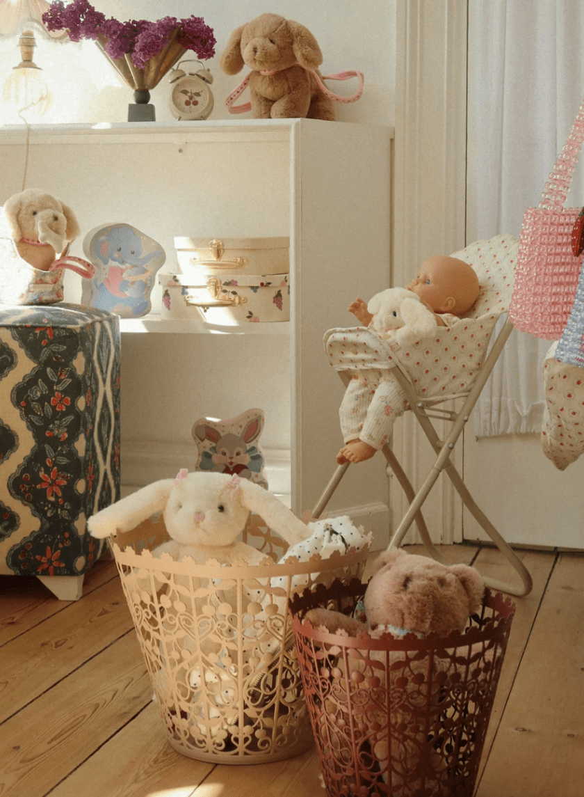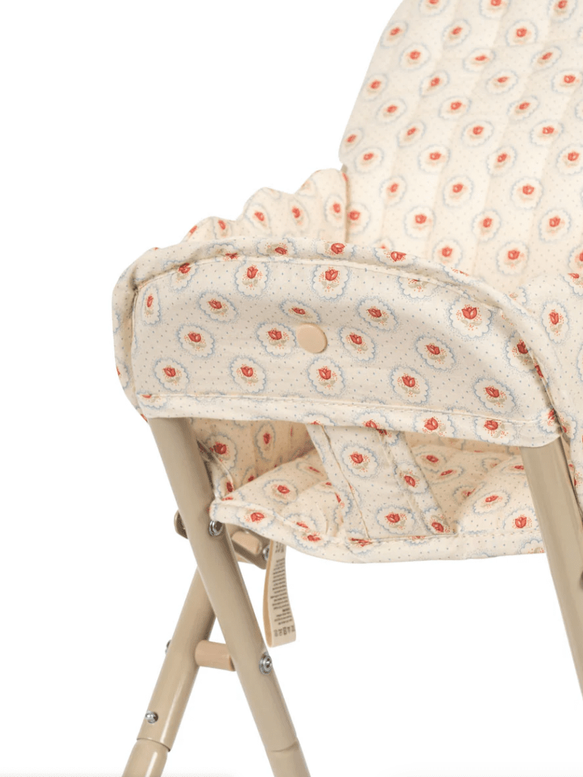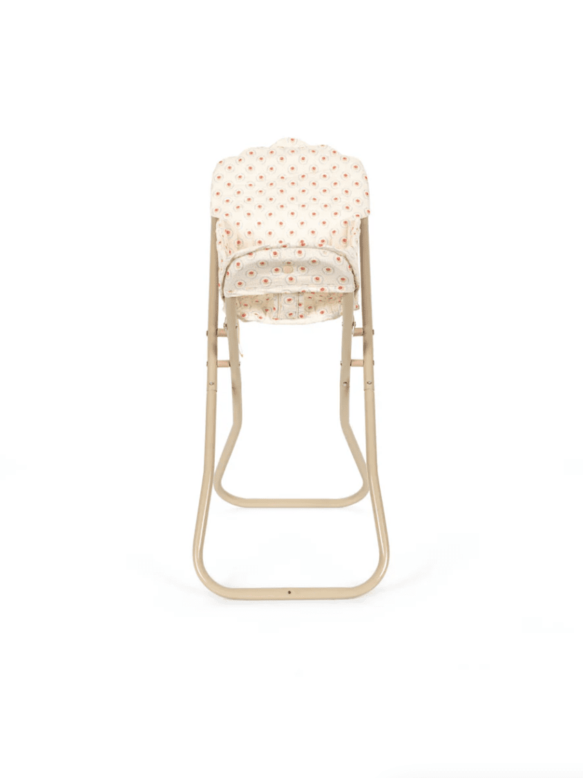 Esta trona plegable permite que los muñecos se arrimen a la mesa. La silla es práctica de usar y fácil de guardar gracias a su diseño plegable. El asiento extraíble y los bordes festoneados decorativos dan a la silla un aspecto juguetón y elegante.