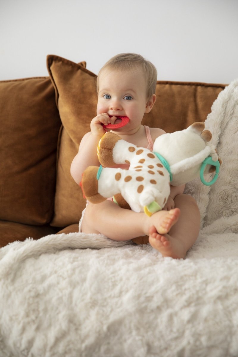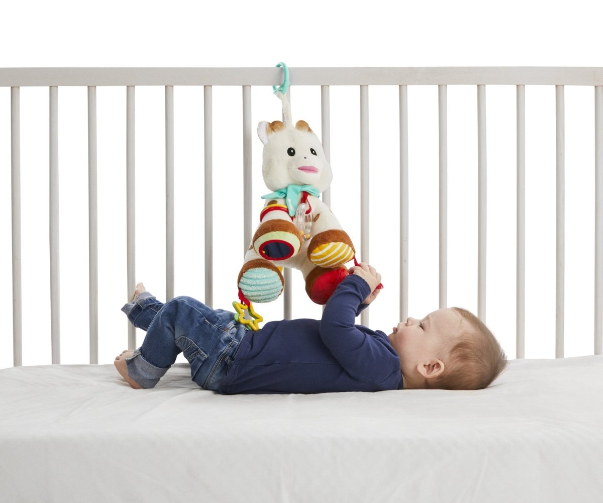 ¡Un adorable y suave peluche de actividades para estimular los sentidos del bebé! El peluche está lleno de actividades por descubrir: un mordedor; un espejo; colores brillantes; diferentes texturas; cascabel; ¡tira de la cola y el peluche empieza a vibrar! ¡Divertido! Gracias a sus pesadas patas, el peluche de actividades puede sentarse y levantarse a cuatro patas. Práctico: el gancho permite sujetar el peluche de actividades a múltiples objetos, como el cochecito, la cuna, el parque y el asa del coche. Adecuado a partir de 0 meses.