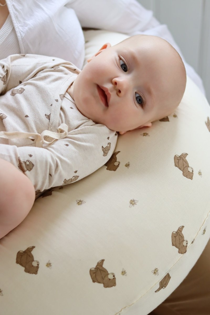 Esta hermosa, innovadora y multifuncional almohada de lactancia está diseñada para que los futuros y nuevos padres empiecen de la mejor manera posible una nueva y asombrosa etapa. La almohada de lactancia satisface las necesidades esenciales para amamantar o dar el biberón al bebé. Con esta pionera almohada de lactancia, dar el pecho a gemelos no es un reto, ya que su longitud es suficiente para alimentar a dos bebés. Práctica y portátil, la almohada se puede atar fácilmente alrededor del cuerpo. Así resulta especialmente cómodo levantarse y sacar al bebé de la cuna, por ejemplo, para darle el pecho. En cada extremo de la almohada de lactancia hay una suave hoja, para que el bebé tenga siempre a mano un paño reconfortante. Además, es moldeable y proporciona un cómodo apoyo a la madre y al bebé durante la lactancia, como almohada para dormir o como soporte lumbar para la madre embarazada. Al mismo tiempo, sirve de apoyo perfecto cuando el bebé necesita tumbarse boca abajo, como silla o como soporte para el cuello a medida que el niño crece.