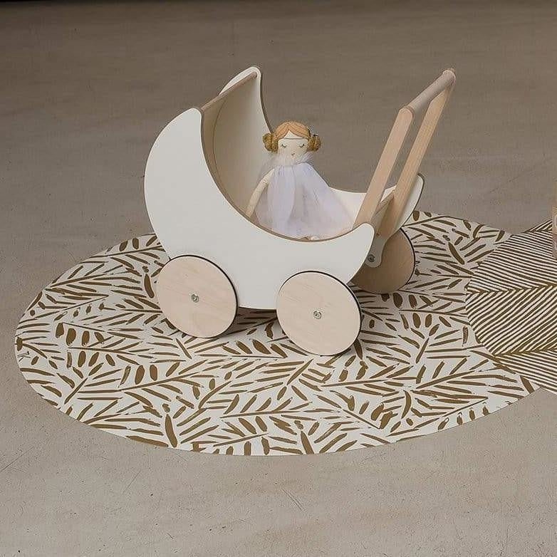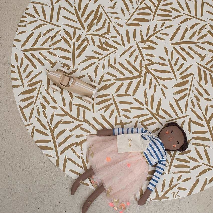 Toddlekind Las alfombrillas Clean Wean de Toddlekind protegen tu suelo de la suciedad mientras comes y añaden un toque de glamour a tu espacio vital. Polivalentes y fáciles de limpiar, también se pueden utilizar debajo de un escritorio o tocador, durante actividades de manualidades e incluso al aire libre. Nuestra alfombrilla ilustrada a mano "Castillo de arena", de la serie Hojas del océano, tiene un color ocre oxidado.