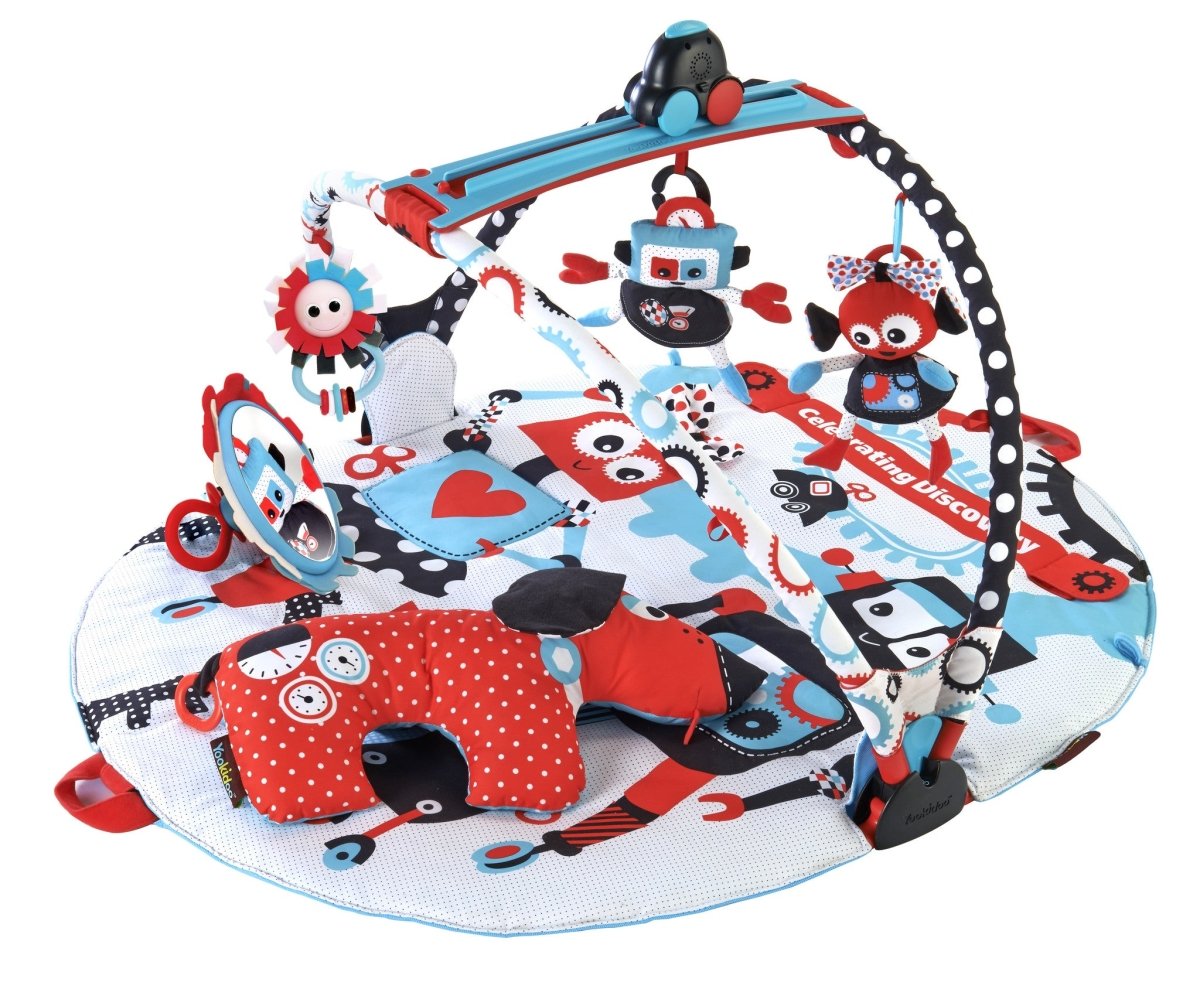La alfombra de juego con arco Robo Playland es una alfombra de juego redonda con varias actividades y juguetes divertidos. El arco motorizado situado sobre la alfombra de juego permite que el cochecito vaya y venga constantemente, lo que proporciona mucha diversión. La alfombrilla de juegos tiene un alegre espejo, juguetes de peluche y un cojín para usar cuando acuestes a tu bebé boca abajo.