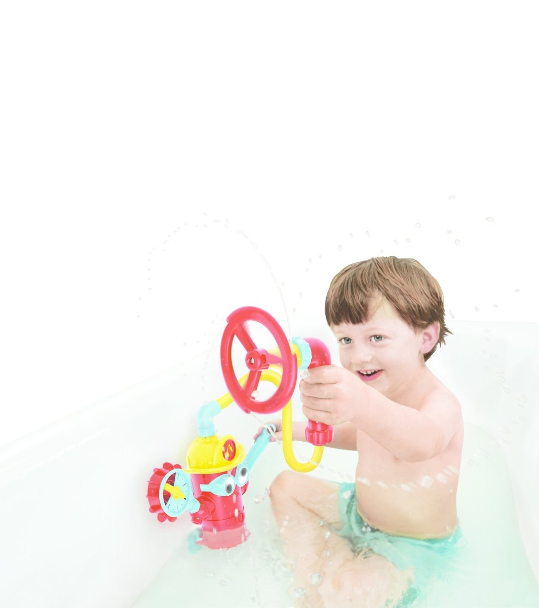 La bomba de bomberos es, por supuesto, un excelente juguete para la bañera o la piscina. Coloca la bomba con la parte inferior en el agua y bombea agua utilizando la palanca azul. Luego, por supuesto, rocía a todos con agua o conecta otro juguete a la manguera para que podáis jugar bien.